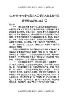 在2025年市委市直机关工委机关党支部作风建设总结会议上的讲话.docx