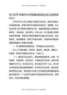 在2025年某中心作风建设总结大会上的讲话.docx