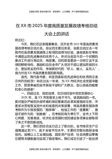在XX市2025年度高质量发展政绩考核总结大会上的讲话.docx