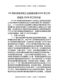 XX市科学技术和工业信息化局2025年工作总结及2026年工作计划.docx