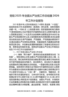 党组2025年全面从严治党工作总结暨2026年工作计划报告.docx