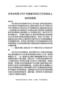 在市水利局2025年度意识形态工作总结会上的讲话提纲.docx