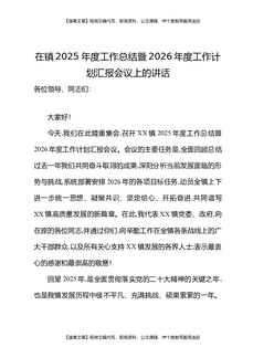 在镇2025年度工作总结暨2026年度工作计划汇报会议上的讲话.docx