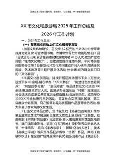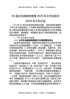 XX县文化旅游体育局2025年工作总结与2026年工作计划.docx