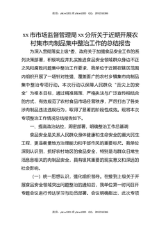 XX市市场监督管理局XX分所关于近期开展农村集市肉制品集中整治工作的总结报告.docx
