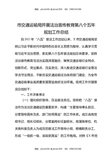 市交通运输局开展法治宣传教育第八个五年规划工作总结.docx