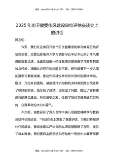 2025年市卫健委作风建设总结评估座谈会上的讲话.docx