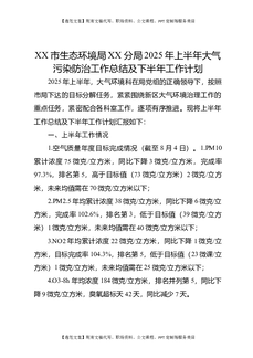 XX市生态环境局XX分局2025年上半年大气污染防治工作总结及下半年工作计划.docx