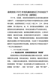 县局党组2025年党风廉政建设工作总结及下步工作计划(通用版).docx