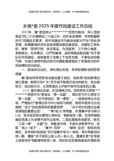 乡镇党委2025年度作风建设工作总结.docx