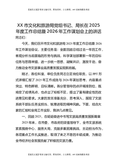 XX市文化和旅游局党组书记、局长在2025年度工作总结暨2026年工作谋划会上的讲话.docx