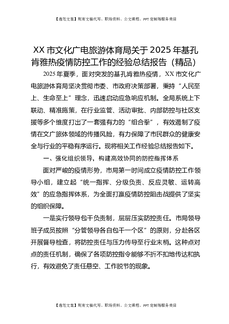 XX市文化广电旅游体育局关于2025年基孔肯雅热疫情防控工作的经验总结报告(精品).docx