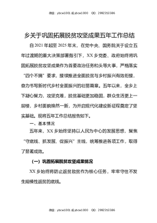 乡关于巩固拓展脱贫攻坚成果五年工作总结.docx