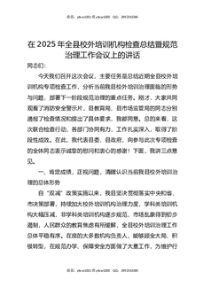 在2025年全县校外培训机构检查总结暨规范治理工作会议上的讲话.docx