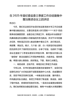 在2025年县纪委监委三季度工作总结暨集中整治推进会议上的讲话.docx