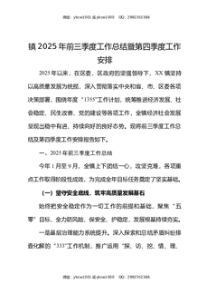 镇2025年前三季度工作总结暨第四季度工作安排.docx