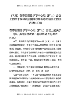 (3篇)在市委理论学习中心组(扩大)会议上的关于学习谈治国理政第五卷总结会上的讲话材料汇编.docx