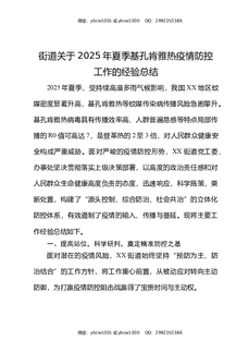 街道关于近期基孔肯雅热疫情防控工作的经验总结报告.docx