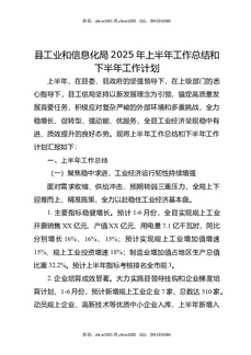 县工业和信息化局2025年上半年工作总结和下半年工作计划.docx