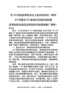 在XX区政府常务会议上的总结讲话(研究XX市建设XX省城乡区域协调发展改革创新实验区改革创新经验复制推广清单).docx