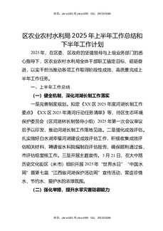 区农业农村水利局2025年上半年工作总结和下半年工作计划.docx