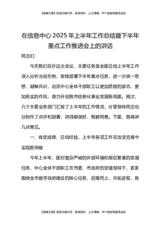 在信息中心2025年上半年工作总结暨下半年重点工作推进会上的讲话.docx