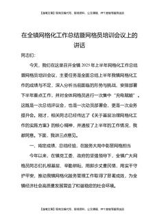 在全镇网格化工作总结暨网格员培训会议上的讲话.docx