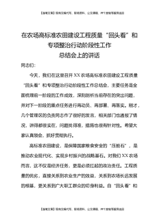 在农场高标准农田建设工程质量回头看和专项整治行动阶段性工作总结会上的讲话.docx