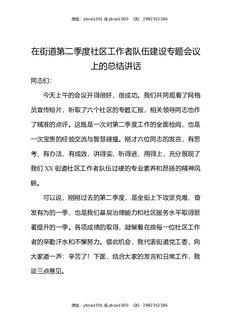 在街道第二季度社区工作者队伍建设专题会议上的总结讲话.docx