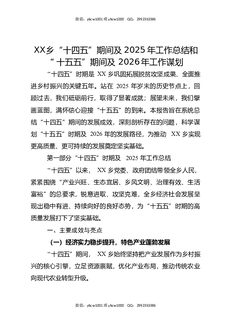 XX乡“十四五”期间及2025年工作总结和“十五五”期间及2026年工作谋划.docx