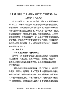 XX县XX乡关于巩固拓展脱贫攻坚成果五年过渡期工作总结.docx