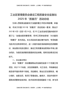 工业区管理委员会建设工程质量安全监督站2025年“质量月”活动总结.docx