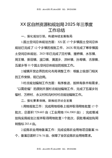 XX区自然资源和规划局2025年三季度工作总结.docx