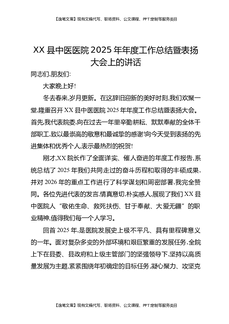 XX县中医医院2025年年度工作总结暨表扬大会上的讲话.docx