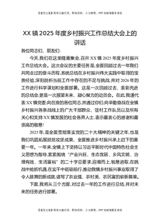XX镇2025年度乡村振兴工作总结大会上的讲话.docx