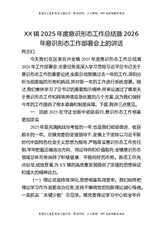 XX镇2025年度意识形态工作总结暨2026年意识形态工作部署会上的讲话.docx