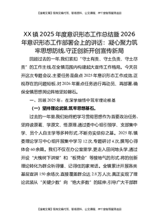 XX镇2025年度意识形态工作总结暨2026年意识形态工作部署会上的讲话:凝心聚力筑牢思想防线,守正创新开创宣传新局.docx