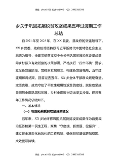 乡关于巩固拓展脱贫攻坚成果五年过渡期工作总结.docx