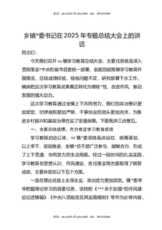 乡镇党委书记在2025年专题总结大会上的讲话.docx