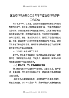 区生态环境分局2025年半年度生态环境保护工作总结.docx