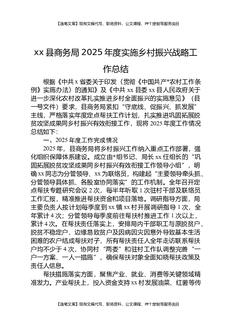 XX县商务局2025年度实施乡村振兴战略工作总结.docx