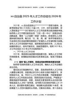 XX自治县2025年人才工作总结与2026年工作计划.docx