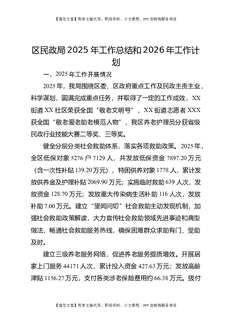 区民政局2025年工作总结和2026年工作计划.docx