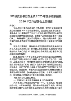 XX镇党委书记在全镇2025年度总结表扬暨2026年工作部署会上的讲话.docx