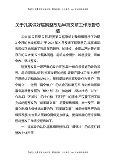 关于扎实做好巡察整改后半篇文章工作报告总结.docx