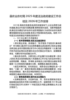 县农业农村局2025年度法治政府建设工作总结及2026年工作安排.docx