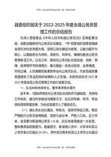 县委组织部关于2025年度全县公务员管理工作的总结报告.docx