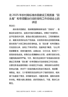 在2025年农村高标准农田建设工程质量“回头看”和专项整治行动阶段性工作总结会上的讲话.docx