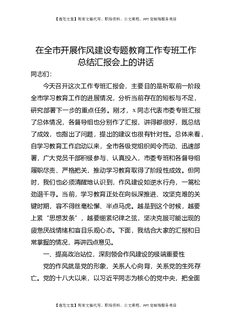 在全市开展作风建设专题教育工作专班工作总结汇报会上的讲话.docx