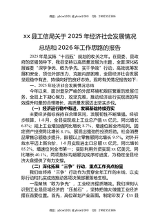 XX县工信局关于2025年经济社会发展情况总结和2026年工作思路的报告.docx